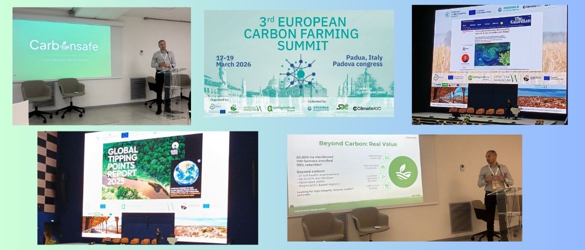 Карбонсейф взе участие в 3rd European Carbon Farming Summit, проведен в Падуа, Италия – едно от водещите европейски събития, посветени на развитието на въглеродното земеделие, иновациите в мониторинга и бъдещето на въглеродните пазари. Форумът събра представители на бизнеса, науката и институциите, които работят за изграждането на устойчиви и надеждни решения в областта на почвения въглерод и климатичните политики.